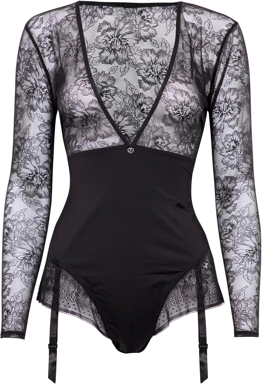Sheer Floral Mesh Design: The standout feature of this body is its beautiful black sheer mesh fabric adorned with intricate floral patterns. This design gives a sensual yet refined look, perfect for both layering and wearing alone.
