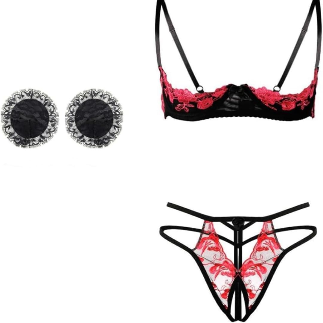Includes Nipple Covers: To complete the ensemble, two lace petal nipple covers are included, offering coverage that pairs well with the delicate design and quarter-cup style.